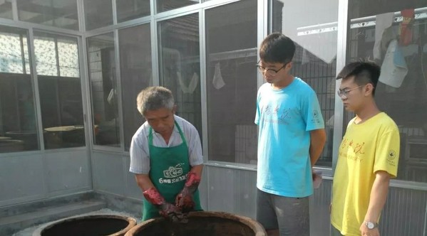 “自1982年,我们就开始生产酱菜,酱菜厂经历了从传统工艺到传统工艺与现代技术相结合的发展历程。我们现在的酱菜制作,克服了传统生产工艺原始、繁杂、生产效率偏低、标准化程度不高的缺点,在腌制过程中,我们坚持传统工艺和现代技术相结合,运用自然发酵酱制而成,这些酱菜属于天然绿色食品,不使用任何化学农药,坚持无污染,无公害种植,我们做着安心,消费者吃着放心。”说到这儿大爷露出了朴实的笑容,当问及是否有想过将自家的厂子做大做强时,大爷摇摇头,莞尔一笑,说道:“我们这小厂子啊,就只有我们一家人,从来没有想过要雇用别人,主要是考虑到这手工酿造酱菜需要耐心、细心,每天都需要认真的查看腌制情况,夏天顶着大太阳,冬天受着大冷风,可不能急功近利,要慢慢地来呢!”临走时,大爷拉着我们的手,要将自家腌制的酱菜送给志愿者们品尝,志愿者们虽未接受,却被老大爷的热情朴实所感动,嘴角不觉上扬,露出了欢喜的笑容。