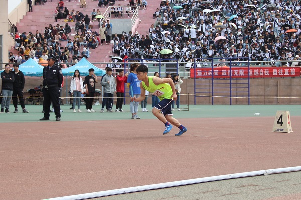 2019年4月19日上午10点45分,潍坊学院第十八届春季田径运动会学生组男子4×400米接力预赛正式开始,物理与光电工程学院李子越、林建豪、梁锋、刘文光四名同学代表物电学院参加参加该项目的角逐。