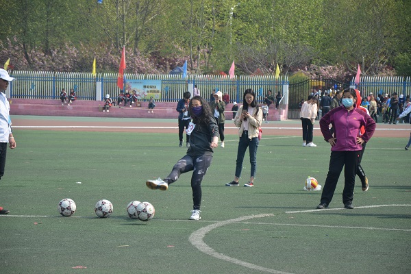 2019年4月19日下午14点30分,潍坊学院第十八届春季田径运动会教工女子甲组足球射门比赛正式开始。物理与光电工程学院王春艳老师代表物电学院参加该项目的角逐。