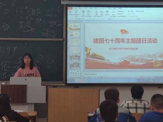 本次主题团日活动以新中国成立七十周年为契机,各班级团支部积极准备,通过理论学习、观看视频等形式,在班级团干部的带领下,团员们聚在一起共同感悟、深入探讨,提升政治理论素养、锻炼实际工作能力,用自身行动来表达对祖国、对党、对团的热情与忠诚。也有不少班级创新方式方法,开展了一场场精彩纷呈呈、内涵深刻的主题团日活动。2016级电子科学与技术一班团支部组织同学们重温国庆阅兵及习总书记的讲话的视频,在方队铿锵的脚步声中,在习总书记豪迈的讲话声中,同学们深感自己使命重大。团日活动之后,大家均表示,必将秉承革命先烈精神,为民族复兴、为国家富强而不懈努力。2017级电子科学与技术2班团支部,开展以“不忘初心,牢记使命”为主题的演讲,把热爱祖国的中心思想与增强学生使命意识教育结合起来,以期深化和扩大本次活动的成果,充分调动团员的积极性,让全体同学清楚了解到新中国成立及发展的奋斗历程。2018级光电信息科学与工程移动通信一班团支部通过观看习总书记讲话视频,并结合“学习强国”APP上的新闻动态及电影《建军大业》的片段,告诉同学们要学习先辈优秀的革命精神,祖国领土神圣不可分割,任何一个反动势力都不能破坏中国统一。讲话句句振奋人心,让人热血澎湃!2019级物理学一班团支部由团支书从“六个一”的角度,带领同学们系统学习党的十九大精神,全面领会和把握习总书记讲话的内涵。