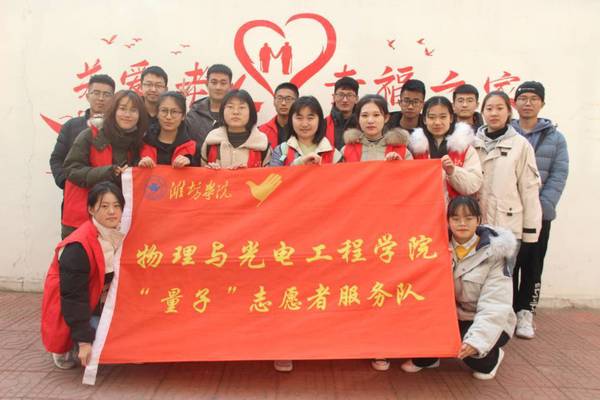 为弘扬“奉献、友爱、互助、进步”的志愿服务精神,彰显当代大学生爱老敬老的优秀品格,提高了志愿者们的个人素质水平和团队协作意识,使志愿者深入了解志愿服务精神的内涵。2019年12月8日,物理与光电工程学院“量子”志愿者服务队结合班级活动来到馨悦老年公寓,陪伴老人们度过了一段美好的时光