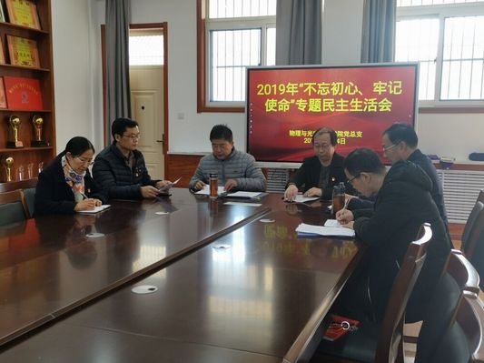 根据学校党委统一部署,12月4日上午,物电学院党总支召开“不忘初心、牢记使命”专题民主生活会。会议由党总支书记仲明礼主持,学院领导班子成员、党总支成员参加会议。
