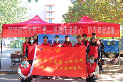 为弘扬“奉献、友爱、互助、进步”的志愿精神,帮助大学新生树立帮助他人、奉献爱心的志愿服务意识,物理与光电工程学院量子志愿者服务队于2020年10月24日在潍坊学院社团广场举办大型军训服回收活动。