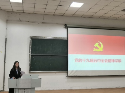 为进一步贯彻落实习近平新时代中国特色社会主义思想和十九届五中全会精神,2021年2月28日至3月1日,物理与光电工程学院在知新楼4109教室和明正楼5109教室召开了各年级十九届五中全会精神宣讲会。本次宣讲活动由各年级辅导员主持,物电学院全体同学到场参加。
