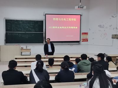为进一步加强对毕业生就业的指导工作,密切关注毕业生的思想动态,抓好毕业生教育工作,2021年4月15日,物理与光电工程学院党总支副书记贺志波在明正楼5109教室给2021届未就业毕业生召开就业推进会。