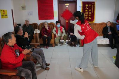 志愿者们伴着和煦的阳光,怀着诚挚的心情来到了馨悦老年公寓。志愿者们的到来,使原本寂静的敬老院充满了笑声,志愿者们为老人们剪指甲、打扫卫生、陪老人们聊天……志愿者们认真地聆听着老人们讲述的改革开放前后的故事,大家更是感受到今天幸福生活的来之不易。小量子们也把自己在外读书情况以及自己家乡情况给老人们一一讲述,一边跟老人谈心,一边为老人捶背。志愿者们还和老人们进行了“歌曲互动”,奶奶们唱起了她们喜欢的戏曲,志愿者们唱着响亮的红歌,老人们为志愿者们打着拍子。志愿者们还为老人们表演了自己学的舞蹈,一切都是那么和谐融洽。屋外阳光明媚、屋内暖意融融,活动在大家的欢声笑语中画上圆满的句号。
