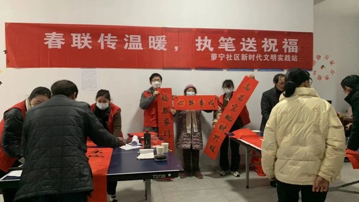 贴春联是中华民族优良的传统文化,也是辞旧迎新的一种象征。2023年1月19日,潍坊学院“量子”社会实践服务队联合萝宁社区志愿者服务站在社区内开展了以“春联传温暖,执笔送祝福”为主题的迎新春写春联活动,让居民真切感受到了浓浓的节日气息和诚挚的新年祝福。