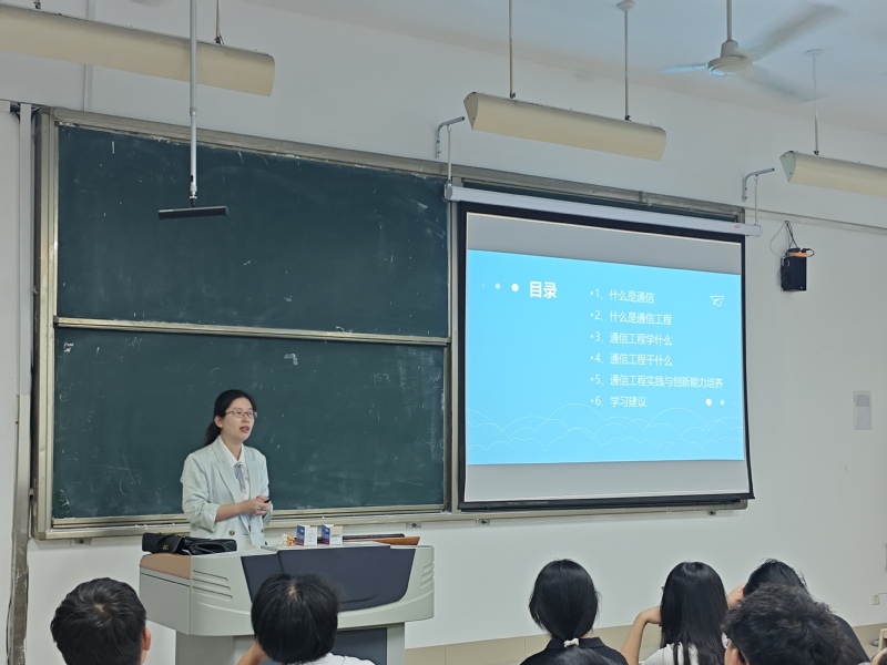 高进老师围绕“走进通信工程,拥抱万物互联未来”主题,从六个方面进行阐述:阐释通信技术的基本原理,解读通信工程的专业内涵与研究范畴,介绍核心课程设置与知识体系,说明相关职业方向与发展路径,强调实践能力与创新素养培养的重要性,并为学生提供了专业学习的实用建议。此外,班主任老师就学业规划、生活适应与未来发展等方面作了补充强调。