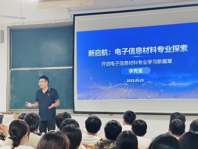 为帮助2025级新生深入了解专业内涵、明确学业目标,夯实学院学风建设基础,9月26日晚,物理与电子信息学院在7104、7105、7106教室组织开展了电子信息材料与通信工程专业探索教育讲座。本次讲座由李秀圣、高进两位专任教师主讲,系统介绍了相关专业的整体概况与发展前景。相关专业学生和班主任参加讲座。
