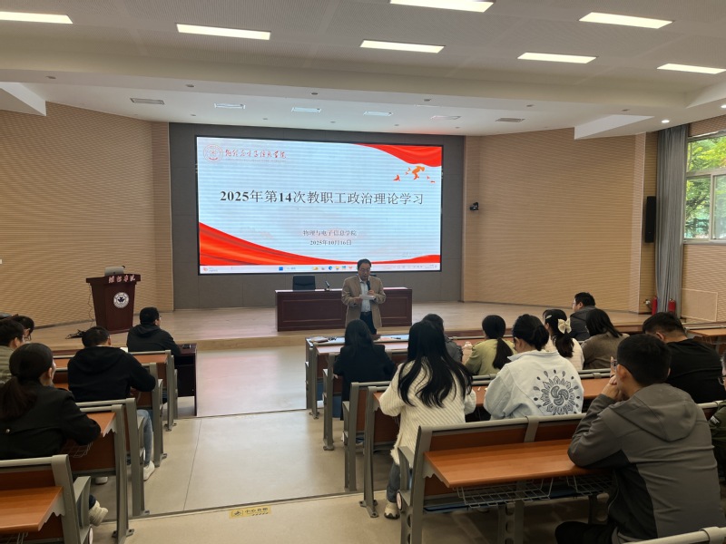10月16日下午,物电学院教职工2025年第14次政治理论学习在知新楼4109室进行,与会人员集体学习习近平总书记给全国特岗教师代表重要回信精神。学院副院长韩锴领学。