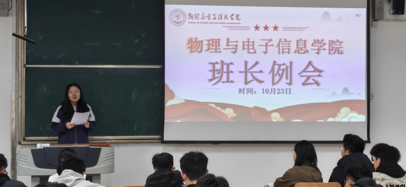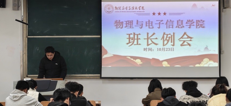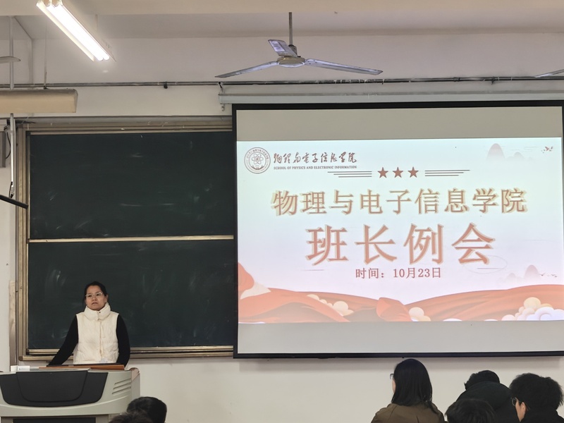 为锚定新学期班级管理核心方向、夯实学风建设根基,物电学院于10月23 日下午在天一楼7108教室召开新学期首次班长例会。学生工作办公室副主任王树森、辅导员刘超、学生会等团学组织主席团代表,以及2023级、2024级、2025级全体班长出席会议。
