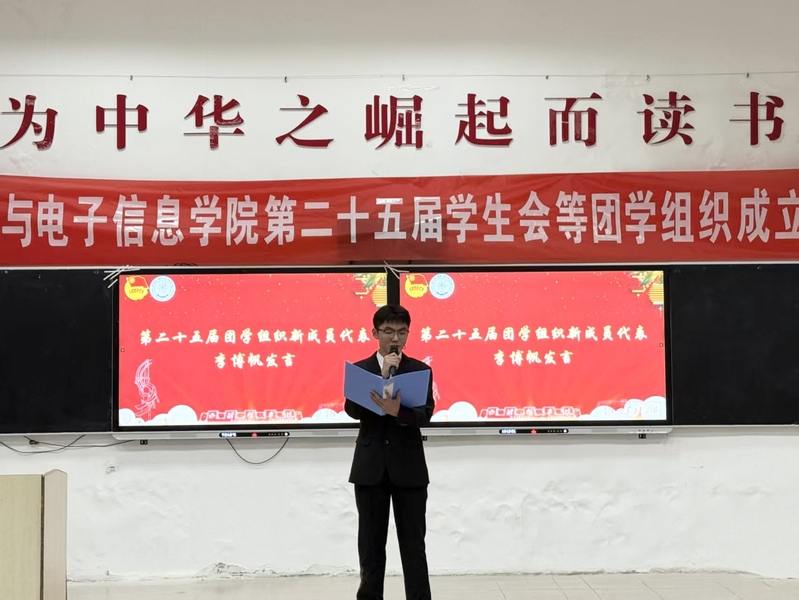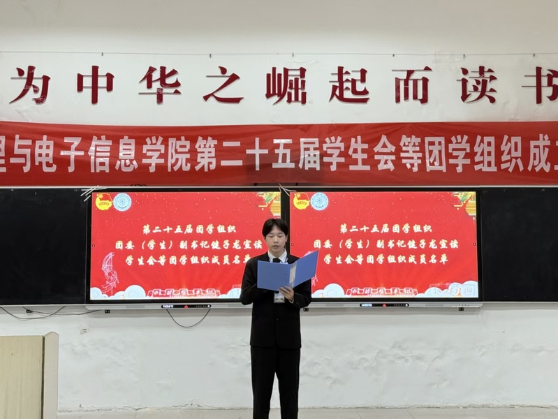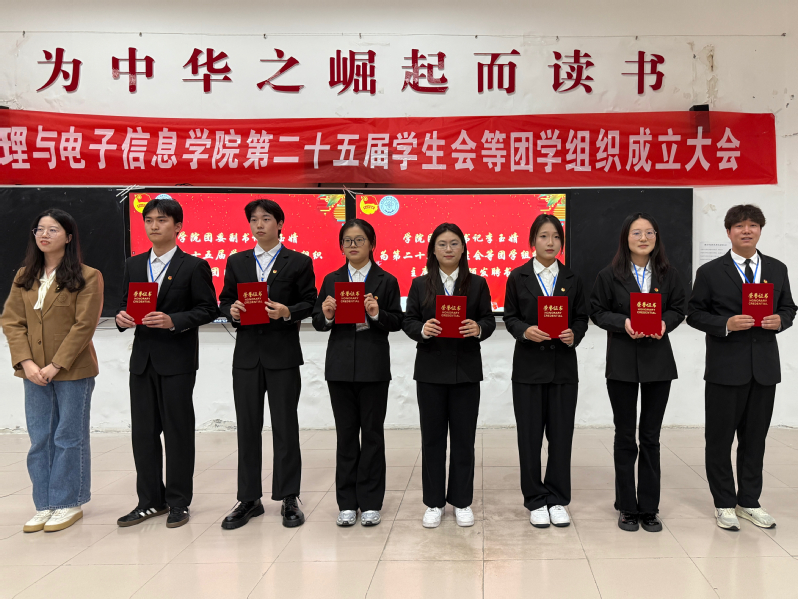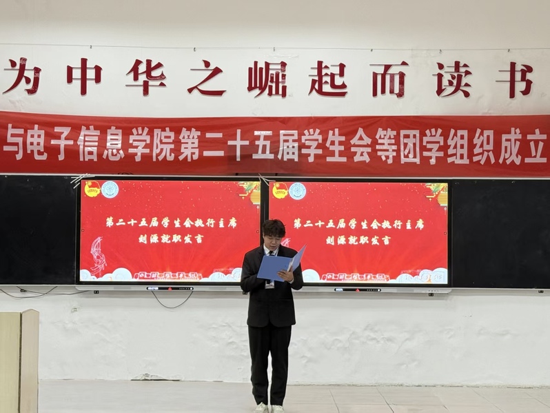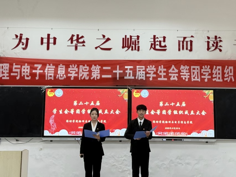 为进一步加强团学组织建设,增强学生骨干的服务意识与综合素养,2025年10月30日下午,物电学院在明正楼5109室举行了第25届学生会等团学组织成立大会。学院党委副书记、副院长于尔河,团委负责人李玉婧,辅导员代表,第24届学生会主席团成员代表,第25届学生会等团学组织全体成员及各二级学院团学组织负责人参会。