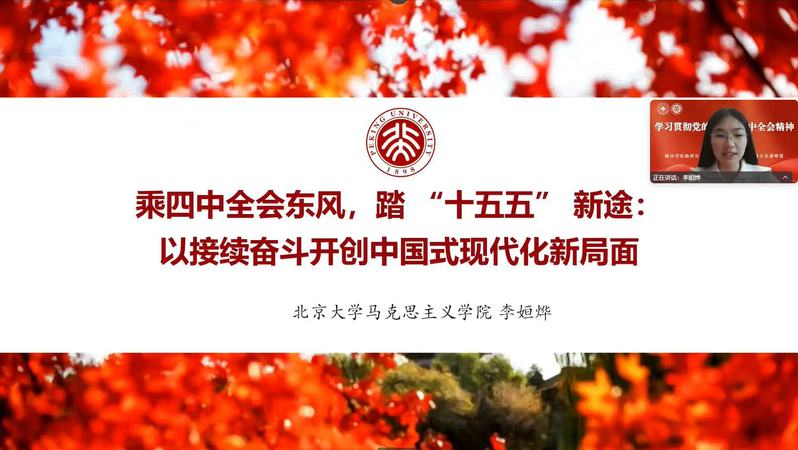 为深入学习贯彻党的二十届四中全会精神,引导师生准确把握“十五五”规划编制的核心要义,11月21日下午,我院在4210报告厅召开学习贯彻党的二十届四中全会精神宣讲会。北京大学博士生讲师团成员——习近平新时代中国特色社会主义思想研究院许多博士、马克思主义学院李姮烨博士受邀主讲,学院党委副书记、院长曹连振,党委副书记、副院长于尔河出席会议。各年级辅导员、学生党员、发展对象、积极分子及青马工程学员参会,研究生党支部负责人于龙主持宣讲会。