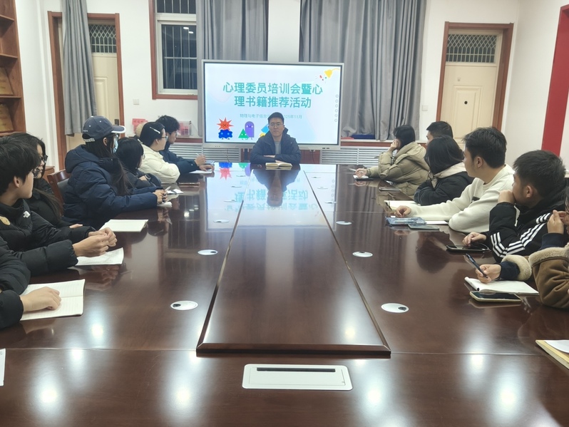为强化班级心理委员队伍建设,提升学生心理健康自我管理与互助能力,11月24日晚,物电学院于明正楼5205教室召开心理委员专题培训会议,并面向全体学生推荐心理健康书籍清单,以专业赋能与阅读滋养双轨并行,守护青年学子心理健康。