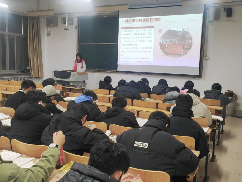 为深入贯彻落实“百万大学生进社区”社会实践工作部署,充分发挥青年学子在基层治理中的青春力量,2025年11月20日,物电学院“量子”志愿者服务队在天一楼开展“以青春之力,筑社区温情”主题班会,全体大一年级新生参加。