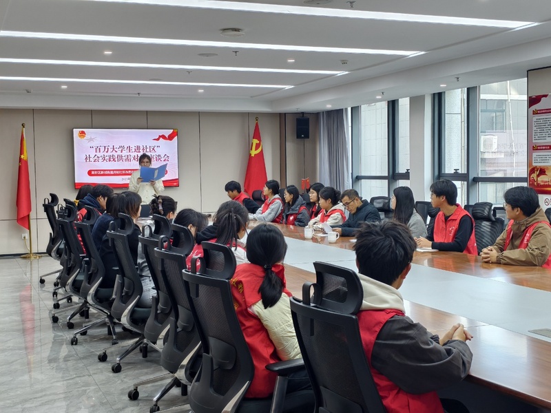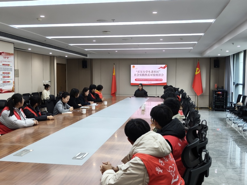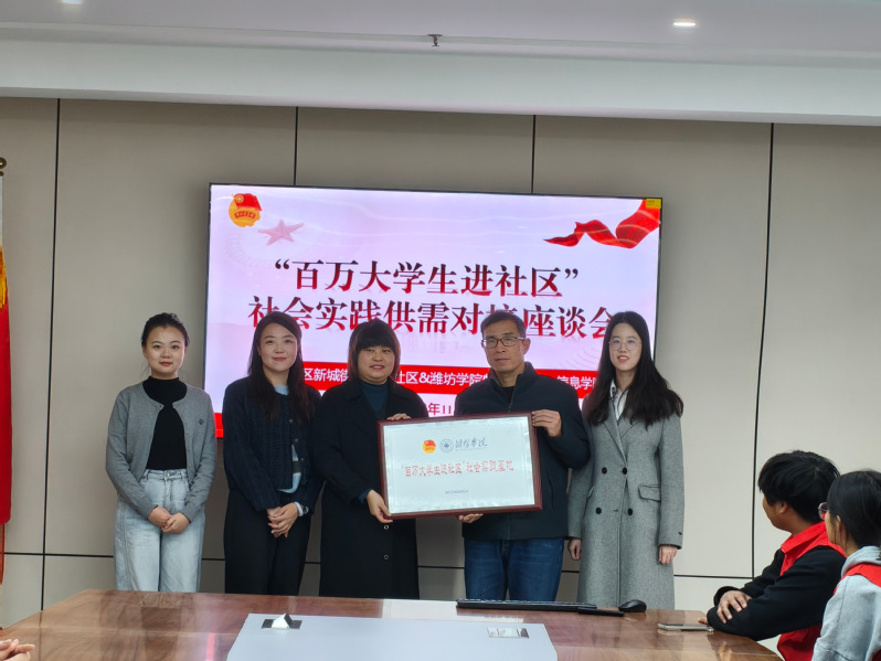 为深化校社合作,推动大学生社会实践常态化、精准化开展,2025年11月19日,潍坊学院物理与电子信息学院与奎文区新城街道府佑社区联合举办“百万大学生进社区”社会实践供需对接座谈会。新城街道党工委副书记、团委书记车永玲,新城街道团工委负责人孔磊,新城街道府佑社区党委书记李欣,学院学生工作办公室主任金波昌,团委负责人李玉婧及“量子”志愿者服务队学生代表参会。
