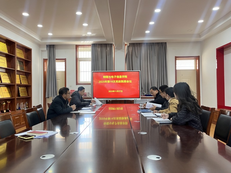 11月27日上午,物电学院在明正楼5205会议室召开本年度第19次党政联席会。学院党委副书记、院长曹连振主持会议,在校的学院领导班子成员、教师代表参会。