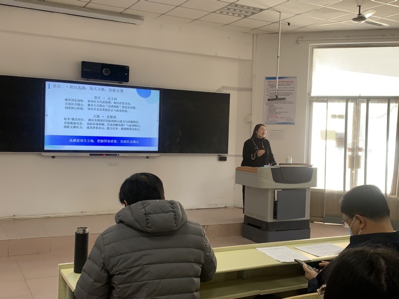 王延青多次首位指导学生参加科创类比赛,并获中国国际创新大赛、“挑战杯”等高水平竞赛的国家级、省级奖项20余项。讲堂上,王延青聚焦三大A类科创赛事——中国国际大学生创新大赛、“挑战杯”全国大学生课外学术科技作品竞赛(简称“大挑”)与“挑战杯”大学生创业计划大赛(简称“小挑”),系统梳理其核心定位、赛道分类与赛程安排,帮助师生构建清晰的赛事认知框架。