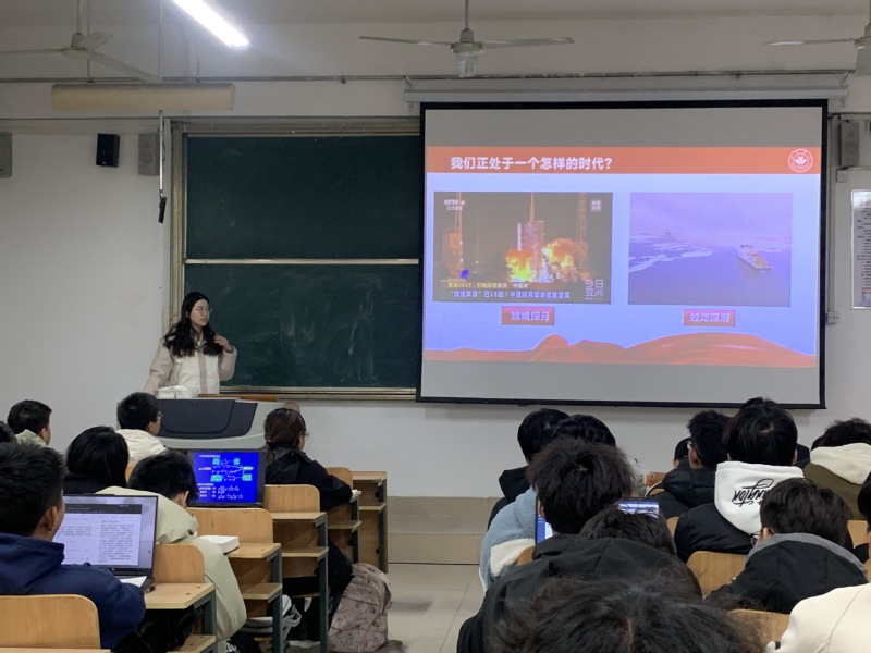 活动过程中,李玉婧以“学习回信精神,争做科创先锋”为主题展开讲解,她围绕“领袖的嘱托、时代的召唤、我们的行动”三大板块,系统解读了习近平总书记给中国国际大学生创新大赛参赛学生代表的重要回信精神,重点阐释了“坚定创新自信”“勇攀科技高峰”“弘扬科学家精神”的核心要义;何建朋围绕“坚持问题导向,培养创新思维”主题展开讲解,他以党的二十届四中全会精神为指引,深入解析“十五五”规划中“创新驱动发展”的战略意义,并鼓励同学们聚焦国家战略与社会需求,从现实痛点中寻找研究课题,主动将个人成长融入国家发展蓝图,勇担科技报国的时代使命。