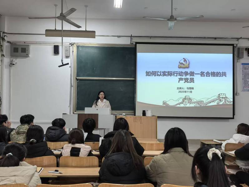 马雪晓以“如何用实际行动争做一名合格的共产党员”为题,组织同学们进行交流;围绕理想信念、责任担当、实践践行等方面引导讨论,强调同学们需立足本职、脚踏实地,以先锋模范作用影响身边人。同学们依次上台结合自身经历进行分享交流,在思想碰撞中深化了对共产党员责任的认知,明确了以实际行动向党组织靠拢的方向。