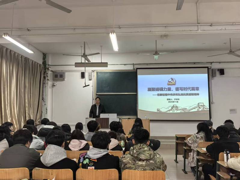 于尔河以《凝聚磅礴力量,谱写时代篇章》为题,系统深入地讲解了伟大抗美援朝精神的丰富内涵、时代价值。于尔河在授课中指出,伟大抗美援朝精神是弥足珍贵的精神财富,它跨越时空、历久弥新,在实现民族复兴的新征程中具有重要引领作用。于尔河强调,全体同学要传承抗美援朝精神,筑牢理想信念根基,将爱国之情、报国之志融入学习实践中,成为新时代勇担使命、建功立业的优秀青年。