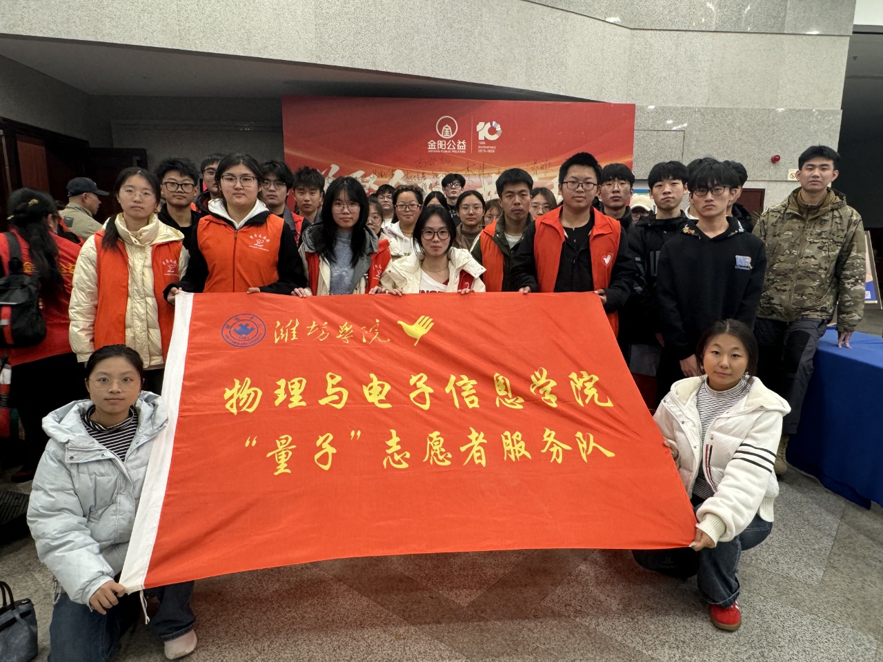 在第40个“12·5”国际志愿者日来临之际,为大力弘扬“奉献、友爱、互助、进步”的志愿服务精神,近日,物电学院“量子”志愿者服务队赴潍坊市奎文区富华国际会议中心,为金阳公益十周年庆典提供秩序维护与参会引导服务。