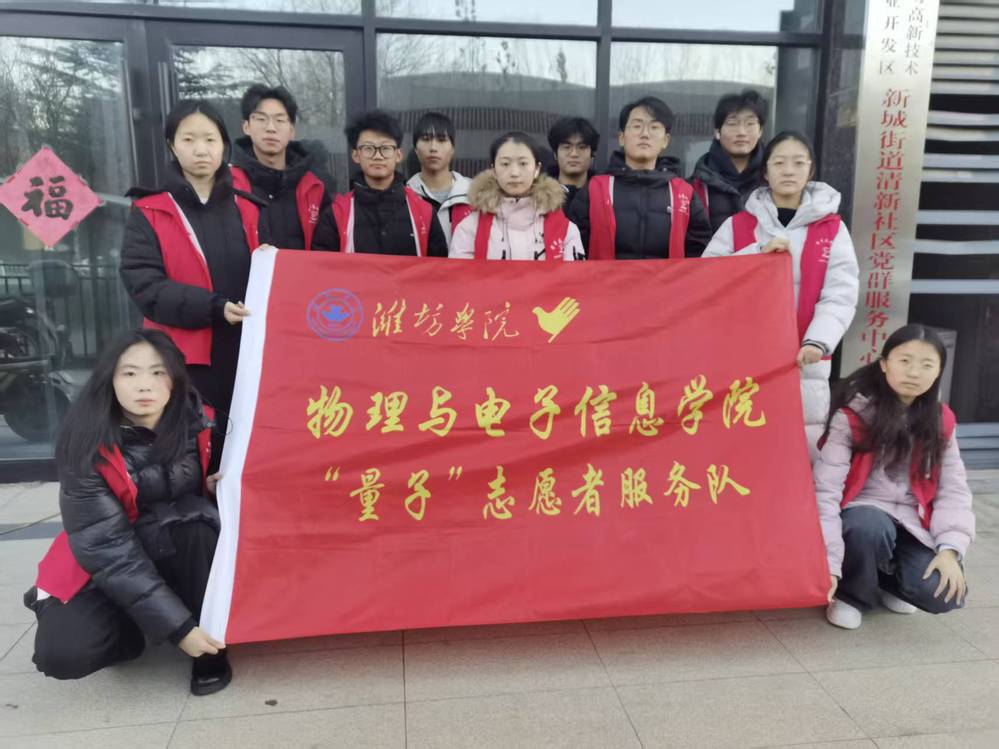 在第40个“12·5”国际志愿者日来临之际,为营造整洁优美的社区环境,筑牢居民反邪教思想防线,2025年12 月3日,物电学院“量子”志愿者服务队赴潍坊市高新区清新社区,开展环境卫生整治与反邪教宣传志愿服务活动。