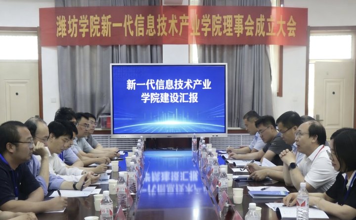 为响应国家新工科建设战略部署,深化产教融合、破解区域新一代信息技术产业人才供需瓶颈,2024年7月4日,潍坊学院新一代信息技术产业学院理事会成立大会在明正楼5205会议室隆重举行。潍坊学院党委委员、副校长李英德,潍坊学院党委委员组织部长赵加强,物理与电子信息学院院长曹连振,潍坊市科技局、工信局、教育局以及合作企业、协会代表参会。
