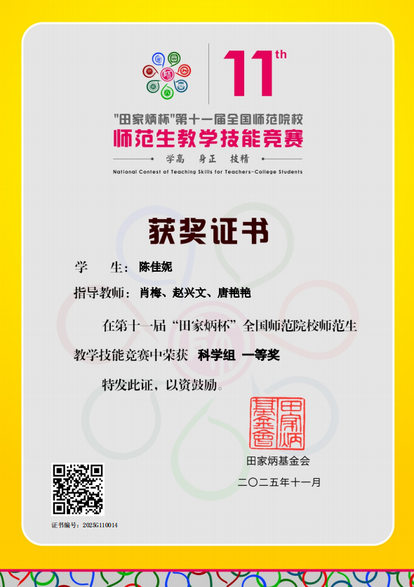 本届“田家炳杯”竞赛聚焦师范生教学核心能力,设置多个学科组别,共有来自全国289所学校的2345名选手参加初赛,561名选手入围决赛。决赛采取现场授课形式,全面考察选手的教学设计、课堂组织与临场应变能力。学院高度重视此次赛事,组建专业指导团队,从教学设计、课堂展示、答辩技巧等维度在赛前对选手们开展了系统化培训。比赛期间,各选手严格遵守竞赛规则、沉着展现专业素养,最终凭借扎实的教学功底与出色的现场发挥斩获佳绩。