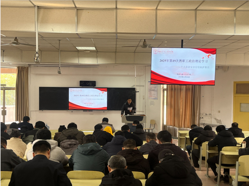 12月18日下午,物电学院教职工2025年第19次政治理论学习在明正楼5210室进行,集中开展个人信息安全日常防护教育。