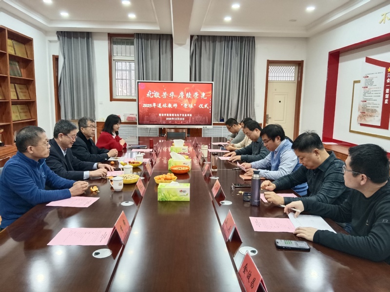 深情送别,敬意满怀。2025年12月23日下午,物电学院在明正楼5205室为本年光荣退休的教师隆重举行荣休仪式。学院党委副书记、院长曹连振主持仪式,学院党政领导、各系部负责人、两办主任、教师代表齐聚一堂,以最真挚的情谊,共同致敬为学院发展奉献了青春与智慧的退休教师们。