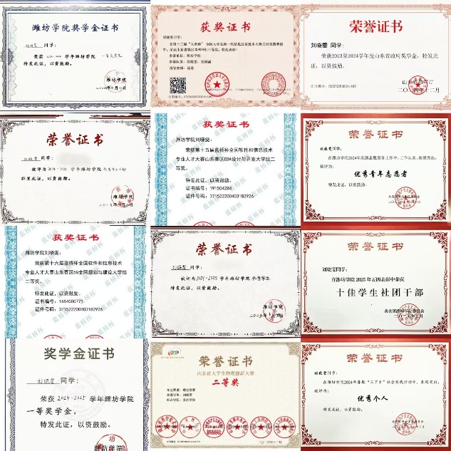 科创方面,她积极投身学科竞赛,以实干诠释钻研精神,在高水平赛事中屡创佳绩:荣获第十六届蓝桥杯全国软件和信息技术专业人才大赛山东赛区5G全网规划与设计二等奖、第十二届“大唐杯”全国大学生新一代信息通信技术大赛工程实践赛三等奖,尽显专业实践能力。