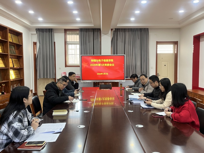 1月7日上午,物电学院在明正楼5205会议室召开本年度第1次党委会。学院党委副书记、副院长于尔河主持会议,在校的学院党委委员参会,相关教师列席会议。