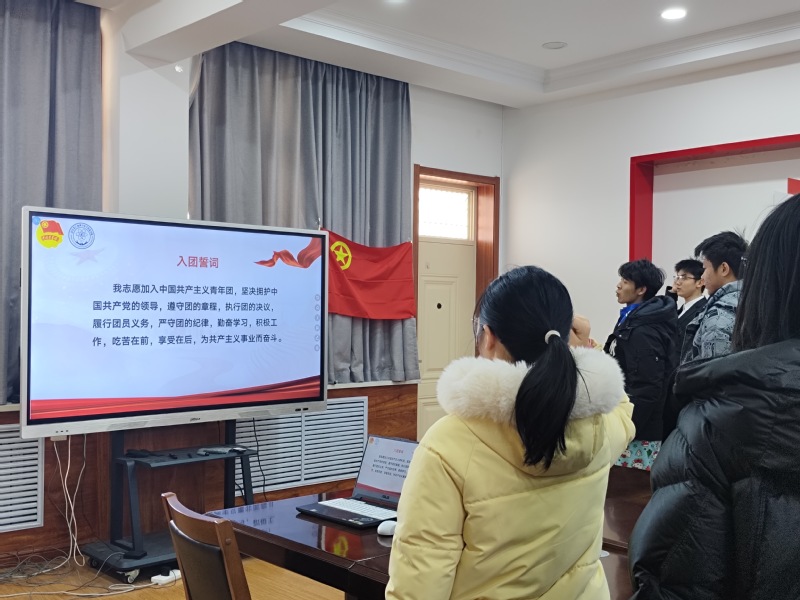 李玉婧对本次会议进行点评指导,勉励全体团员持续夯实理想信念根基、积极投身科创赛事、深入社会实践一线,把入团誓言转化为立足岗位、奋勇争先的实际行动。最后,参会团员庄严起立,重温入团誓词,铿锵有力的誓言回荡全场,凝聚起全体团员勇毅前行的青春力量。