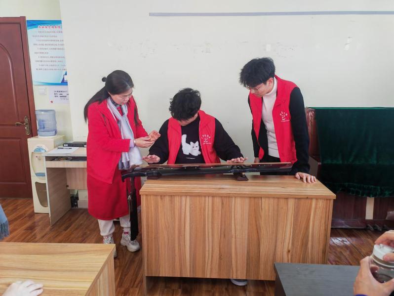 活动现场,社区特邀非遗传承人现场授课,为志愿者们带来古琴、拓印两项传统技艺体验教学。在古琴课堂上,老师先以一曲《韦编三绝》拉开教学序幕,随后细致讲解古琴的历史渊源、构造特点与基础弹奏指法,并现场演奏《梅花三弄》,《秋风落叶》等经典曲目,在悠扬的琴声中,手把手指导志愿者拨弦、按音,带大家感受传统音律的独特韵味;在拓印教学中,老师一步步拆解操作流程,从润纸、固定底版,到捶打、上墨、揭纸,将每一步操作要点拆解示范,强调力度与手法的把控,手把手指导操作要点,耐心解答志愿者的疑问。志愿者们认真观摩、积极实践,在反复尝试中摸索技巧要领,不仅沉浸式体验古琴弹奏的乐趣,还亲手制作出专属拓印作品,在动手实践中真切感受非遗技艺的匠心与魅力。活动期间,志愿者们主动协助非遗传承人整理教学器材、引导社区群众有序参与体验,用贴心服务助力非遗文化走进基层群众,以实际行动践行志愿精神、传播非遗文化。