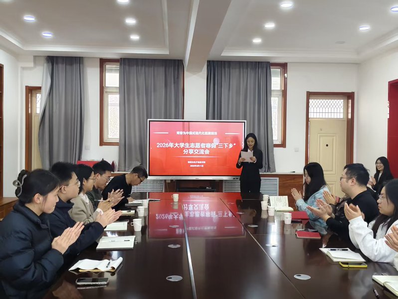 为全面梳理寒假“三下乡”社会实践活动成果,搭建经验交流共享平台,系统梳理活动亮点与问题不足,3月20日,物电学院于明正楼5205会议室召开2026年大学生志愿者寒假“三下乡”分享交流会,学院团委负责人李玉婧、全体指导老师以及学生会主席团成员、重点实践队伍代表参会。