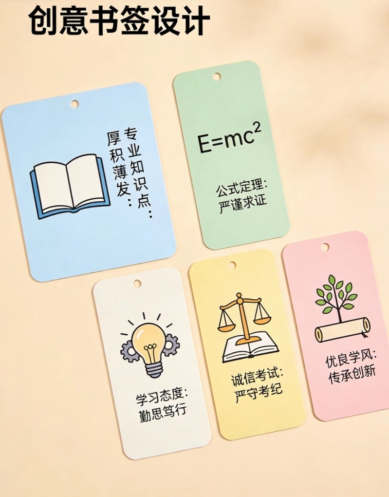 本次活动围绕专业知识点、公式定理、诚信考试、优良学风等核心主题展开,面向全院学生开展作品征集。征集形式丰富多元,涵盖主题海报、趣味表情包、创意书签、卡套、手机壁纸、钥匙扣平面图等多种文创设计类型。同学们可以充分发挥创新思维,打破传统学习模式的局限,将抽象晦涩的专业知识与积极向上的价值理念相融合,通过生动形象的设计将理论知识具象化、趣味化,让专业知识以更具活力的形式走进校园生活,进一步激发全院学生的学习热情与创作动力。