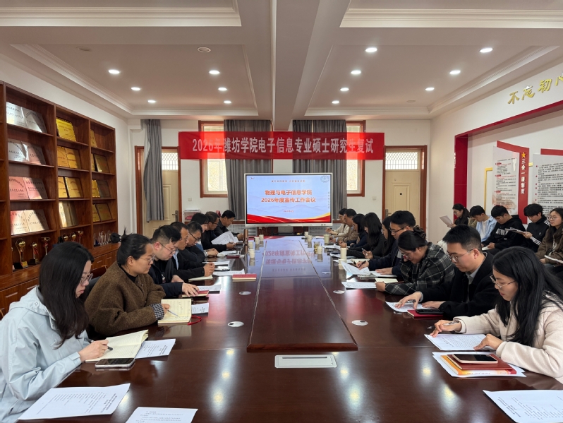 为进一步强化思想引领,提升宣传质效,锤炼队伍本领,破解工作难题,推动宣传工作补短板、强弱项、破难题、提质效,4月2日,物理与电子信息学院在5205会议室召开2026年度宣传工作会议。学院全体班子成员、各系部主任、全体科级干部、全体辅导员、学生会主席团成员、大学生新闻中心全体负责人参加会议。