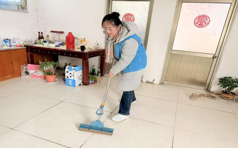 活动当日,实践队员携带米、牛奶等慰问物资走进村内独居老人家中,与老人围坐促膝长谈。实践队员细致询问老人的日常起居、身体状况实际困难,认真倾听长辈讲述人生经历乡村变迁等故事,在温情交流中拉近与老人的距离。结合冬季气候特点与老人居家生活需求,实践队员化身安全宣传员,用通俗易懂的语言向老人们普及用火用电安全、防滑技巧、基础健康养生等知识,并结合典型案例讲解安全隐患防范要点,提醒老人注意居家安全,切实提升老人们的自我防护意识和能力。最后,实践队员帮助老人们整理衣物、擦拭门窗、清扫庭院,将居所整理地干净整洁。老人们脸上露出欣慰的笑容,现场氛围温馨融洽。