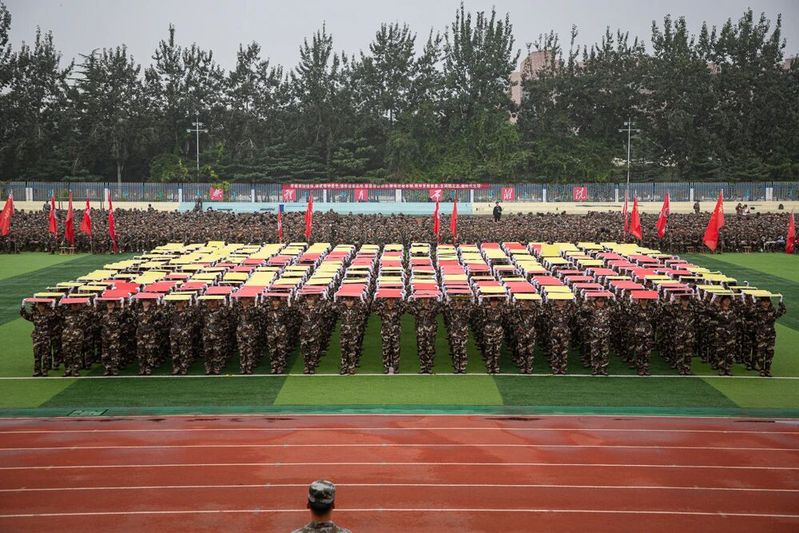 迷彩方阵如潮涌,裹挟着青春力量向前涌动