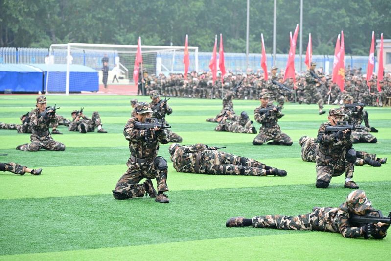 战术方队模拟实战,穿插突击、灵活变阵,尽显战斗作风