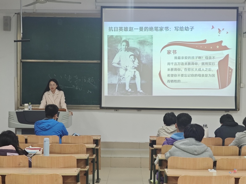 马雪晓老师以“家书”为线索,串联林则徐“苟利国家生死以”的报国情怀、赵一曼烈士嘱托、夏明翰誓言,以及邓稼先、当代戍边战士、航天工程师的家国故事,引导新生在古今交融的家国情怀中感悟责任与使命,汲取前行的信仰力量。