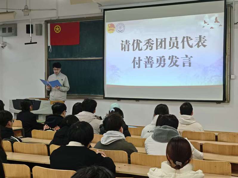 优秀团员代表付善勇分享成长感悟,并鼓励新团员厚植爱国情怀、践行红色初心,在科技创新、志愿服务等领域勇担使命,让青春在奋斗中绽放光彩。